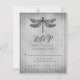 Envíe a los huéspedes una tarjeta RSVP de la libélula guiada con su invitación. El diseño de la tarjeta de respuesta incluye una libélula con guijarros de piedra y vitalidad contra un fondo vintage a rayas angustiadas. Personalice con la fecha de respuesta y las opciones de menú. También hay material de boda adicional disponible con este diseño.