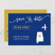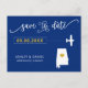 Usted eligió un lugar especial para su boda. Ahora es el momento de celebrarlo con esta etiqueta para guardar la postal de fecha, con un mapa de siluetas y un pequeño avión dirigiéndose a tu destino. Para mover el corazón al lugar de su boda, haga clic en personalizar y luego en "personalizar".