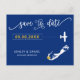 Usted eligió un lugar especial para su boda. Ahora es el momento de celebrarlo con esta etiqueta para guardar la postal de fecha, con un mapa de siluetas y un pequeño avión dirigiéndose a tu destino. Para mover el corazón al lugar de su boda, haga clic en personalizar y luego en "personalizar".