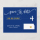 Usted eligió un lugar especial para su boda. Ahora es el momento de celebrarlo con esta etiqueta para guardar la postal de fecha, con un mapa de siluetas y un pequeño avión dirigiéndose a tu destino. Para mover el corazón al lugar de su boda, haga clic en personalizar y luego en "personalizar".