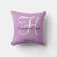 almohada personalizada de Boda púrpura, almohada monogramada en blanco y negro con nombres de novia y novio y fecha boda en escritura decorativa.Sólido fondo color tostado. Hace un gran regalo para los recién casados. Elegante, moderno, accesorio para tu habitación, silla favorita o cualquier habitación en tu casa familiar. Personalizar con sus nombres, fecha inicial de monograma y fecha de boda. Disponible en los años 100 de los colores monograma, letras, iniciales, elegantes, monogramados, bodas, nombres, "novia y novio", boda, moda, "keepsake boda", decoración doméstica, de moda, blanco, gris, almohadas