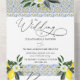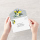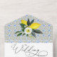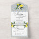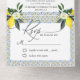 Invitación mediterránea temática de limón acuarela azules, hermosos limones amarillos y flores blancas. Ideal para una boda de destino o un elegante boda de verano al aire libre Todo en una invitación con tarjeta RSVP
