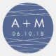 Personalice estos sellos simples con sus iniciales y fecha de boda para una forma de moda de terminar sus invitaciones, favores y más. El diseño presenta letras blancas limpias en un fondo azul oscuro cruzado con líneas geométricas blancas. Diseñado para coincidir con nuestra colección de invitaciones a bodas de Lineation en Steel Blue.