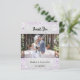 Una moderna tarjeta fotográfica de agradecimiento al boda. Un fondo falso plateado decorado con un falso purpurina morado. Personalice y agregue su foto al frente y gracias nota al fondo. Atrás: una mariposa de plata 1 hoja = 1 carta de agradecimiento borde impreso a borde.
