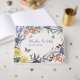 Flores acuáticas coloridas, mariposas y un colibrí pequeño sobre un fondo de papel texturado con letras violetas claras.