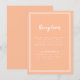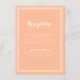 Tarjeta de información de recepción de boda simple, minimalista y elegante con un diseño contemporáneo con un borde de doble marco en blanco crujiente sobre un fondo de melocotón de moda. La redacción tradicional proporciona una sofisticación atemporal y moderna. Personalice el diseño de la boda con sus detalles en letra blanca crujiente y letra script. La parte trasera de la tarjeta coincide en melocotón sólido.