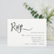 Elegantes y únicas tarjetas RSVP de boda. Fondo blanco (se puede cambiar a cualquier color) y caligrafía de escritura negra RSVP. Iniciales de novia y novio en la parte trasera de la tarjeta. Lugar para añadir la opción MENU. Plantillas editables para que pueda agregar su propio texto. Perfecto para cualquier tema boda o época del año. Añade estas tarjetas de respuesta a tus invitaciones. Vea la colección.
