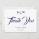 Nautical ancla azul marino y blanco elegante pareja de guiones iniciales de monograma Boda personalizada Gracias tarjeta de nota. Personalizable de texto, nombres y fecha.