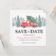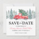 Bodas de invierno rústicas ahorran las tarjetas de fecha con un fondo blanco simple, navidades de acuarela abetos, un camión rojo vintage, un árbol de navidad y un tradicional guardar la plantilla de fecha que es fácil de personalizar.
