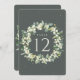 Una tarjeta boda de dos caras, verde oscuro, con nubes de nieve pintadas a mano y eucalipto, colocada en una bella corona botánica. Todo el texto es completamente editable. Otros diseños, productos de números de tabla y artículos de coordinación están disponibles en mi tienda.