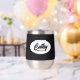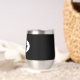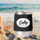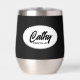 Regale a su boda dama de honor con este vaso de vino de acero inoxidable, de moda y personalizado, con su nombre en escritura estilizada dentro de un diseño ovalado y blanco. El color de fondo y el guión son negros. ¡Perfecto para una fiesta de soltera! Personalice su vaso de vino editando y reemplazando el nombre de la dama de honor por el nombre deseado. Disponible en muchos de los populares esquemas de color de las bodas de novias.