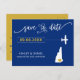 Usted eligió un lugar especial para su boda. Ahora es el momento de celebrarlo con esta etiqueta para guardar la postal de fecha, con un mapa de siluetas y un pequeño avión dirigiéndose a tu destino. Para mover el corazón al lugar de su boda, haga clic en personalizar y luego en "personalizar".
