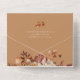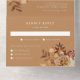Boda De Oro En Una Invitación. Esta elegante invitación a la boda se lleva a cabo todo en uno, con naranja quemado con acuarela pintada a mano y hojas de terracota, dahlias crema y beige, y hermosos rosas de color rojizo sobre un oro | fondo amarillo mostaza. El RSVP incluye una selección de platos. Buscar elementos coincidentes en la colección Gold Autumn Romance.