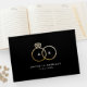 Este libro de personalizado negro incluye anillos de boda de Relieve metalizado de oro fino encerrados y un monograma de pareja moderna. Bienvenido a la recepción de tu boda con este libro de visitas personalizado y tendrás un toque de alegría para leer mucho después de que el canto de las campanas bodas se haya desvanecido.