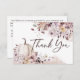 Tarjeta de agradecimiento para boda de otoño, plantilla de tarjeta con follaje y calabazas boho en acuarela marrón pastel, fuente moderna.