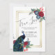 Hermoso pavo real con flores Verde azuladas y azules, borgoñas, hojas verdes saladas en este otoño, otoño, artículos de boda de invierno. Parte de una colección más grande que incluye invitaciones para bodas con presupuesto, guardar las fechas, confirmaciones de asistencia, tarjetas de fotos de agradecimiento, regalos para novias y fiestas de boda, y más. Para una planificación de bodas en invierno GRATUITA, visite weddingdesignchic.com.