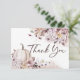 Tarjeta de agradecimiento de boda de otoño enamorada, plantilla de tarjeta de agradecimiento con follaje boho y calabazas de acuarela marrón pastel, fuente moderna.