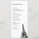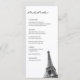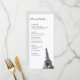 Moderno menú de recepción de bodas en blanco y negro de la Torre Eiffel con la opción de personalizar total de todos los títulos y textos. Introduzca el editor Zazzle para personalizaciones de diseño adicionales.