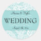 Pegatinas de novios con un borde de encaje, fondo azul.
