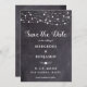 Reserva la fecha! Anuncie a su boda a sus amigos y familia con estos rústicos timbres y luces de cuerda para guardar las tarjetas de cita. Personaliza con nombres, fecha de boda, ubicación. Añadir cualquier otra información en la parte posterior. Este único boda de pizarra, que salva las tarjetas, hará que su huésped se asegure de guardar la fecha. DERECHOS RESERVADOS © 2020 Judy Burrows, Black Dog Art - Todos los derechos reservados. Rustic String ilumina la boda de pizarra del tablero de ajedrez Save the Date