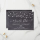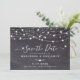 Reserva la fecha! Anuncie a su boda a sus amigos y familia con estos rústicos timbres y luces de cuerda para guardar las tarjetas de cita. Estas únicas lámparas de cuerda y el boda de pizarra de pizarra de pizarra, ahorrando las tarjetas, harán una impresión duradera, los huéspedes se asegurarán de guardar la fecha. DERECHOS RESERVADOS © 2020 Judy Burrows, Black Dog Art - Todos los derechos reservados. Rustic String ilumina la boda de pizarra del tablero de ajedrez Save the Date