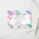 bonito, moderno, pintado a mano plumas de acuarela patrón de boda RSVP. un elegante y único color rosa pastel, púrpura, turquesa moda color boho pintado a mano patrón de plumas acuáticas pintadas a mano. Perfecto para primavera, verano y boda bohemio o al aire libre