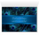 Hermosas plumas reales de pavo real azul con elegantes tarjetas de boda de banda azul pavo real y de mesa de eventos. Personalizar con su elección de estilo de fuente, color de fuente y mensaje.