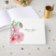 libro de boda blanco bonito con acuarela de adornos rosados. Personaliza el texto negro para tu día especial.