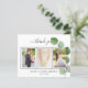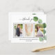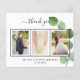 Agrega 3 de tus propias fotos y una nota de agradecimiento. Un fondo blanco clásico con texto y marco negro, espiral de eucalipto. El texto: Gracias en la parte delantera y sus nombres en la parte trasera están escritos con un elegante guión con letras a mano con guiones.