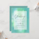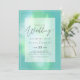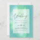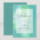 Invitación de boda moderna con campos de plantilla de texto a ambos lados y una nube de color azul verdoso.