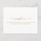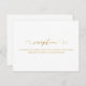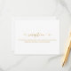Tarjeta de recepción de boda blanca y dorada sencilla y elegante con un hermoso guión de caligrafía.