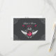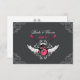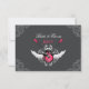 Tarjeta RSVP poco convencional que se enviará con la invitación de matrimonio coincidente, en rosa fucsia, blanco y gris, con un tema de rock y roll con ilustracion de guitarras eléctricas, alas y elegantes adornos barrocos vintage. Personalízalo con tu propia información o haz clic en "Personalizar" si necesitas editar el diseño, los colores y el texto o elegir un tamaño de invitación diferente. También hay disponibles invitaciones de boda y sobres coincidentes.