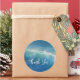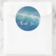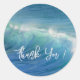 Boda en la playa gracias pegatinas. Agua azul oceánica y olas, pegatina redondo con "gracias" en letra de escritura moderna. pegatinas redondos vienen en dos tamaños y se pueden añadir al dorso de los sobres o poner en el embalaje de favoritas.
