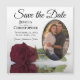 Estos magnéticos ahorran el área de las tarjetas de cita una forma maravillosa de hacer que sus amigos y familia sepan de su próximo boda. Cuentan con un bonito diseño romántico y elegante con un solo rosa de color burdeos, marrón o rojo vitivinícola de tallo largo que refleja una piscina de agua con olas y olas y una foto en forma de oval sobre un fondo blanco clásico. La leyenda dice Guardar la fecha con espacio para los nombres, la fecha y la ubicación.