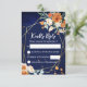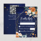 Naranja y rosas blancas sage eucalyptus verde fondo azul marino marco geométrico armazón floral tarjeta RSVP código QR RSVP en la parte posterior - si no es necesario - simplemente borrar esos campos de la caja de texto.