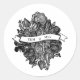 Estos pegatinas redondos hacen sellos para sobres perfectos para enviar invitaciones nupciales o una forma fácil de personalizar los favores de la fiesta nupcial. Presentan un ilustracion de un ramo de rosas en blanco y negro con un estilo antiguo de grabado. Al otro lado de las flores hay un cartel blanco que está listo para ser personalizado con el monograma o las iniciales de la novia y el novio. El gráfico se establece en un fondo blanco y claro.