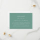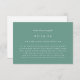 Haga una declaración de elegancia subestimada con esta simple y clásica tarjeta de respuesta de asistencia de bodas basada en texto sobre azul verde azulado suave. Utilice la opción de personalización para cambiar todo el color que se adapte al tema del boda. Personalice todo el texto de esta tarjeta de inserción de RSVP en línea y ayude a dirigir a su invitado a su sitio web boda para obtener información adicional mientras ahorra algunos árboles y dinero en el envío de devolución.