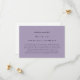 Haga una declaración de elegancia subestimada con esta simple y clásica tarjeta de respuesta de boda basada en texto sobre púrpura lila pálida. Utilice la opción de personalización para cambiar todo el color que se adapte al tema del boda. Personalice todo el texto de esta tarjeta de inserción de RSVP en línea y ayude a dirigir a su invitado a su sitio web boda para obtener información adicional mientras ahorra algunos árboles y dinero en el envío de devolución.