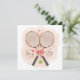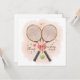 ¡Envíe sus gracias con estilo con esta encantadora tarjeta de boda de tenis! Con raquetas de tenis cruzadas, pelotas de tenis y corazones de amor dispersos, este diseño añade un toque lúdico y romántico a las parejas amantes del tenis. El texto "Gracias" está elegantemente integrado, lo que lo hace perfecto para notas de agradecimiento, favores o papel de boda. El estilo moderno y luminoso de las acuarelas con colores suaves y románticos crea un ambiente festivo y acogedor.