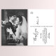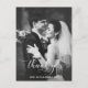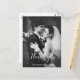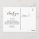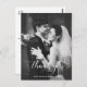 Foto de Boda de tipografía moderna Gracias Postcard con elegante escritura blanca en el frente y escritura negra en la parte posterior. Añada fácilmente la foto y el texto de su personalizado al frente y al reverso de la postal.