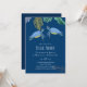 Adorables tortugas marinas y hojas tropicales aparecen en este artículo de boda con tema de vida marina de playa moderno, parte de una colección más grande. El tema de color aquí es azul y amarillo vibrante.