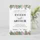 Anda en las vacaciones y tus próximos nupciales con esta encantadora boda de invierno, ¡salven las fechas! Nuestro moderno diseño presenta una delicada cubierta de color agua en tonos suaves de invierno, enmarcando sus nombres en una caligrafía elegante. Un toque de nieve caprichosa y una pizca de magia de los bosques completan esta encantadora escena invernal de las tierras maravillosas, haciendo saber a sus invitados que deben guardar la fecha para su celebración especial.