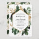 Invitación de bodas con pinturas abstractas y tropicales modernas. Forma parte de una moderna colección de bodas.