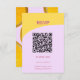 La moderna tarjeta RSVP de Boda Italiana de Verano fue diseñada para elevar tus invitaciones a la suite de invitados de boda con un toque de elegancia. Sus huéspedes pueden escanear fácilmente el código QR para acceder a su sitio web boda, donde pueden ver RSVP en línea en sólo unos cuantos clics. Este proceso sin fisuras te garantiza que no perderás ni una sola respuesta, permitiéndote concentrarte en lo que realmente importa: celebrar tu gran día. Mantén las cosas sencillas y elegantes con esta solución moderna para gestionar tu lista de invitados sin esfuerzo. Con sus detalles en un guión moderno de moda, esta tarjeta muestra una hermosa mezcla de rosa y lavanda que complementa perfectamente su tema boda. Al revés, una rebanada de limón con un fondo amarillo y soleado irradia la alegría y la calidez de un verano italiano, añadiendo un elemento lúdico pero sofisticado a la papelería boda. Perfectamente emparejada con nuestra invitación a la Boda de Verano Moderna Italiana, esta tarjeta RSVP agrega un toque de sofisticación y encanto a sus huéspedes.
