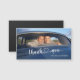 Boda horizontal plano gracias tarjeta magnética. El texto "Gracias" está escrito en una letra curvada con el corazón unido.