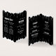 Aquí hay un programa de bodas en blanco y negro con un fuego blanco que abarca las páginas del programa negro. Perfecto para bodas temáticos espeluznantes, alternativos, góticos o monocromáticos y ocasiones especiales.