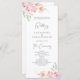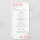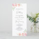 Déjate sentir por la elegancia y la alegría de tu día de bodas con este hermoso diseño moderno con ramos de acuarela color rosa y floral de coral con acentos dorados. Los títulos "Boda de", "Ceremonia", "Fiesta de bodas" y "Gracias" están escritos en un elegante y suave guión gris oscuro. Puedes personalizar el saludo de bienvenida, tus nombres, la fecha de boda y los eventos de ceremonia en el frente y la fiesta de boda y el mensaje de agradecimiento personal al revés, todo en una simple y elegante tipografía de coordinación. Perfecto para bodas de verano, al aire libre y en el jardín. Este programa está diseñado para coordinar con nuestra colección de Bodas de acuarela floral rosa, coral y dorada.