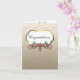Elegante tarjeta de matrimonio tan damasco, con hermosos gráficos de joyas como el rosa dorado y la flor azul. Un área de texto de borde dorado, en la parte delantera, tiene texto de escritura negra leyendo Felicitaciones. El interior está decorado con un marco dorado, con un fondo blanco, y está adornado con elegantes flores de joyería. Personaliza el texto que contiene con tu propio saludo y nombre.