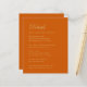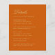 Un boda de presupuesto muy sencillo detalla la tarjeta del recinto, sólo texto amarillo dorado sobre fondo naranja quemado. El título Detalles (que se puede cambiar) está escrito en un guión caligráfico elegante.