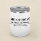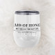 Celebra tu día especial con este regalo de boda de vino diseñado para tu criada de honor. Este tumbler personalizado, que presenta un guión elegante de caligrafía y una tipografía moderna, es un elegante punto de referencia para cualquier celebración o celebración de bodas. Un regalo meditado y personalizado de fiesta de boda, es perfecto para mostrar aprecio a su fiesta nupcial mientras le agrega un toque de moda a las festividades. Tanto práctico como hermoso, es una manera atemporal de decir gracias.